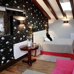 Todas las habitaciones están dotadas de teléfono, TV de pantalla plana, acceso a Internet, así como de unos cuartos de baños muy especiales. En la suite, además, podrá disfrutar de salón con chimenea y bañera hidromasaje.